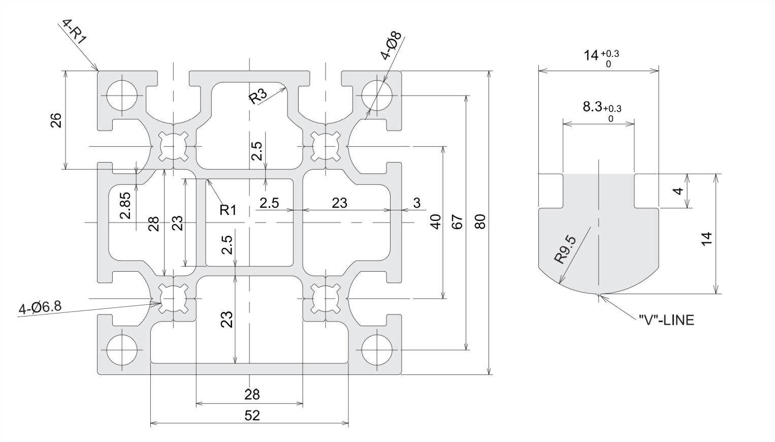 | Weight ( 重量 ) | 5.33kg/m |