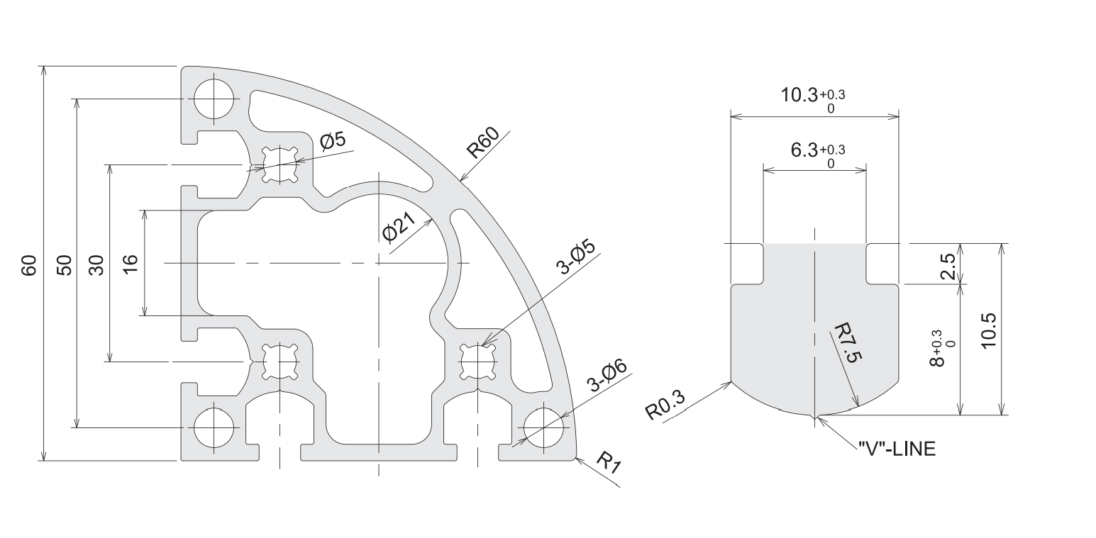 | Material ( 材質 ) | A6N01S-T5 or A6063S-T5 |