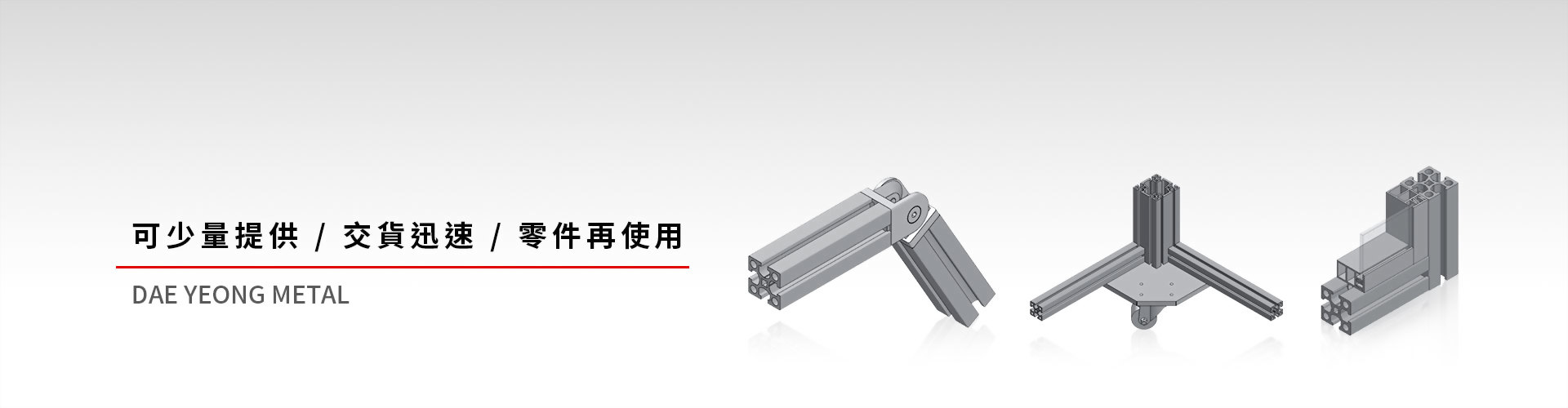 鋁擠材:M5M6M8系列與配件對應輕中重負荷應用。